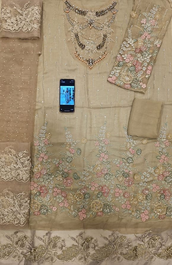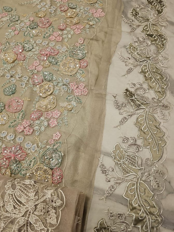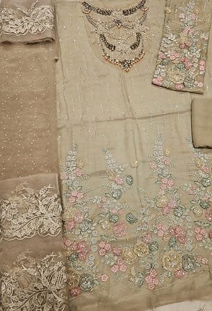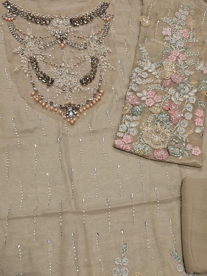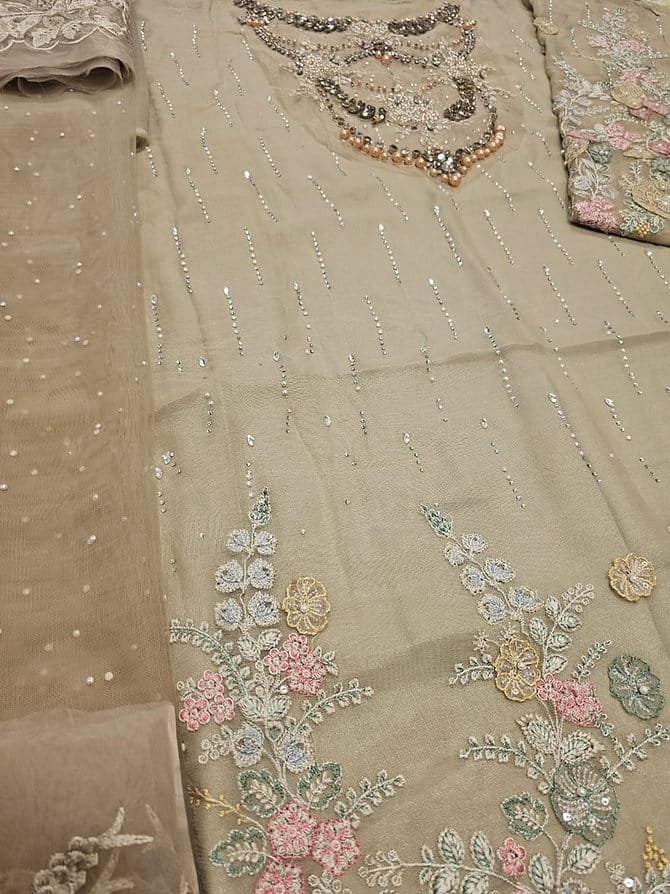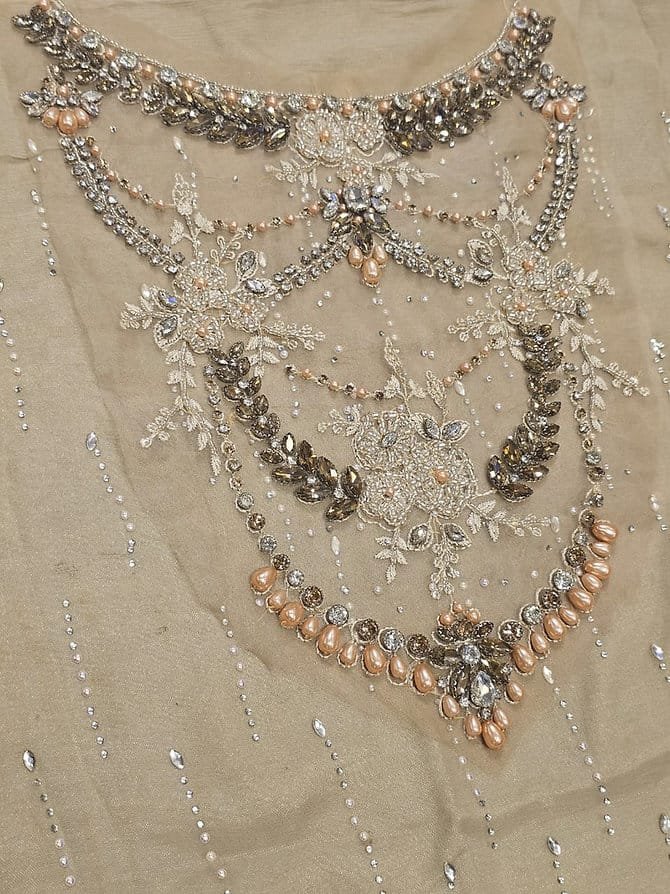 Hand Embellishment Organza Neck With 3D & Diamantes