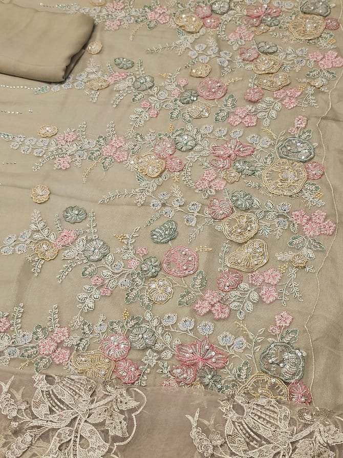 Embroidered Chiffon Front With 3D Flowers & Diamantes