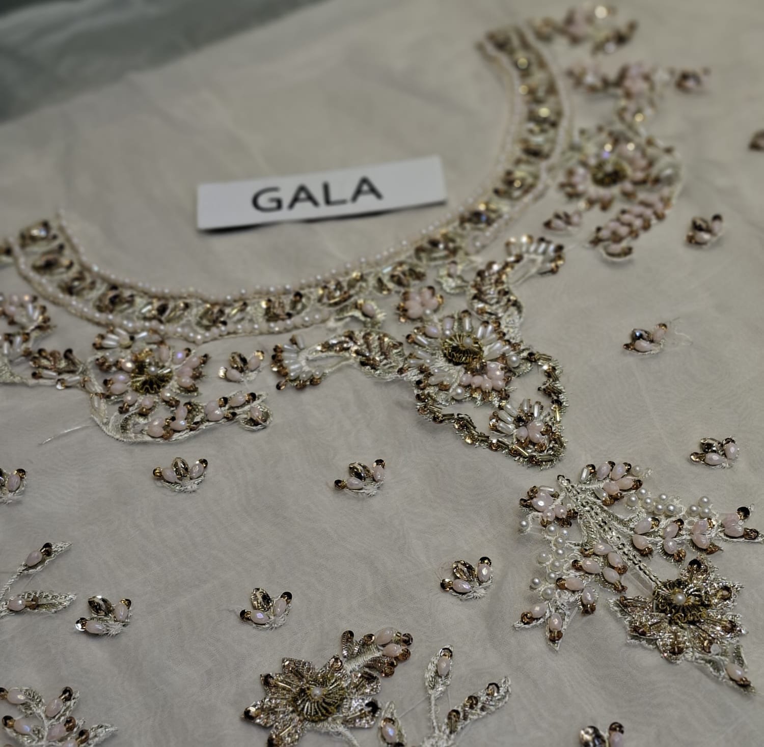 The model images are provided solely for reference purposes. When you receive your dress, it will be based on the fabric shown in the open fabric or stitched dress pictures complete with the specified color, embroidery, and all embellishments.