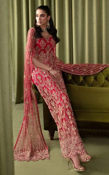 Haniya - Pakistani Wedding Formals Raspberry Gown Outfit