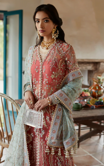 Zille Wedding Festive Pakistani Mint Blue Long Shirt Style Dress